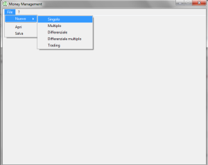 Cliccate in alto sulla sinistra dove trovate “File“. Successivamente potete scegliere la tipologia di sistema che volete impostare: Singolo, Multiplo, Differenziale, Differenziale multiplo e Trading: