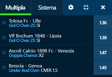 Pronostici calcio 18-03-23 Le scommesse del sabato Pronostici di oggi 2023-03-18 Quota Media sui Book Recensiti 4.00 Quota Media sui Book Recensiti 4.09 Book Consigliati e Recensiti 1 15 € GRATIS + 1024 € 4.8 / 5 TOTAL SCORE Check >>> Check >>> 2 30 euro + 20 giocate gratis 3.9 / 5 TOTAL SCORE Check >>> Check >>> 3 5 € GRATIS + 300 4.6 / 5 TOTAL SCORE Check >>> Check >>> 4 100 € sulla prima scommessa 4.8 / 5 TOTAL SCORE Check >>> Check >>>