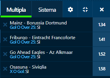 Pronostici calcio 25-01-23 Pronostici di oggi 2023-01-25 Quota Media sui Book Recensiti 4.54 Book Consigliati e Recensiti 1 15 € GRATIS + 1024 € 4.8 / 5 TOTAL SCORE Check >>> Check >>> 2 30 euro + 20 giocate gratis 3.9 / 5 TOTAL SCORE Check >>> Check >>> 3 5 € GRATIS + 300 4.6 / 5 TOTAL SCORE Check >>> Check >>> 4 100 € sulla prima scommessa 4.8 / 5 TOTAL SCORE Check >>> Check >>>