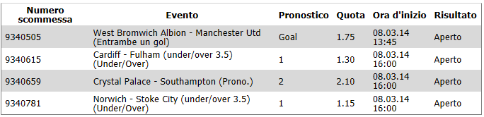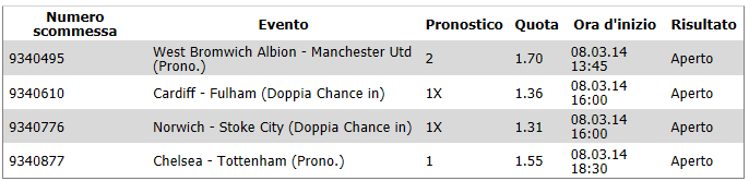 Pronostici Premier League 08 Marzo 2014 Schedine Pronte e analisi partite