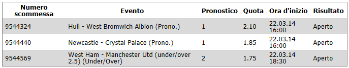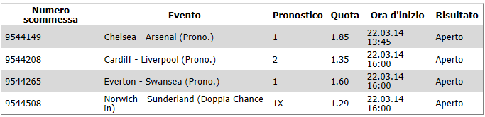 Pronostici Premier League 22-23 Marzo 2014 Schedine Pronte e analisi partite