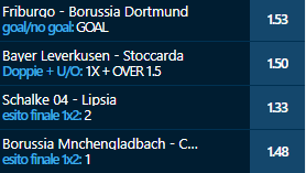 Schedina Bundesliga 06-02-2021 Pronostici Bundesliga 2021-02-06 Quota Media sui Book Recensiti 4.52 Book Consigliati e Recensiti 1 15 € GRATIS + 1024 € 4.8 / 5 TOTAL SCORE Check >>> Check >>> 2 30 euro + 20 giocate gratis 3.9 / 5 TOTAL SCORE Check >>> Check >>> 3 5 € GRATIS + 300 4.6 / 5 TOTAL SCORE Check >>> Check >>> 4 100 € sulla prima scommessa 4.8 / 5 TOTAL SCORE Check >>> Check >>>