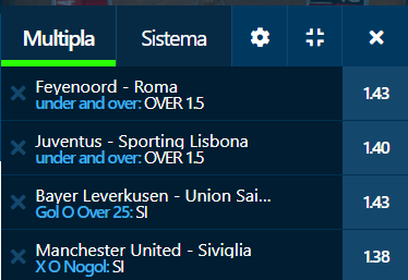 Schedina Europa League 13-04-23 Pronostici Europa League 2023-04-13 Quota Media sui Book Recensiti 3.95 Book Consigliati e Recensiti 1 15 € GRATIS + 1024 € 4.8 / 5 TOTAL SCORE Check >>> Check >>> 2 30 euro + 20 giocate gratis 3.9 / 5 TOTAL SCORE Check >>> Check >>> 3 5 € GRATIS + 300 4.6 / 5 TOTAL SCORE Check >>> Check >>> 4 100 € sulla prima scommessa 4.8 / 5 TOTAL SCORE Check >>> Check >>>