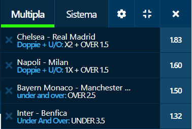 Schedine Champions League 18 e 19-04-23 Pronostici di oggi 2023-04-18 Quota Media sui Book Recensiti 5.80 Book Consigliati e Recensiti 1 15 € GRATIS + 1024 € 4.8 / 5 TOTAL SCORE Check >>> Check >>> 2 30 euro + 20 giocate gratis 3.9 / 5 TOTAL SCORE Check >>> Check >>> 3 5 € GRATIS + 300 4.6 / 5 TOTAL SCORE Check >>> Check >>> 4 100 € sulla prima scommessa 4.8 / 5 TOTAL SCORE Check >>> Check >>>