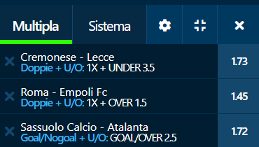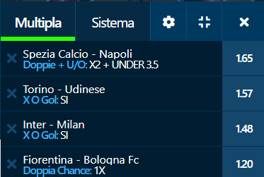 Schedine Serie A 04 e 05-02-23 Pronostici Serie a 2023-02-04 Quota Media sui Book Recensiti 4.31 Quota Media sui Book Recensiti 4.60 Book Consigliati e Recensiti 1 15 € GRATIS + 1024 € 4.8 / 5 TOTAL SCORE Check >>> Check >>> 2 30 euro + 20 giocate gratis 3.9 / 5 TOTAL SCORE Check >>> Check >>> 3 5 € GRATIS + 300 4.6 / 5 TOTAL SCORE Check >>> Check >>> 4 100 € sulla prima scommessa 4.8 / 5 TOTAL SCORE Check >>> Check >>>