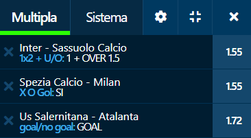 Schedine Serie A 13 e 14-05-23 Pronostici Serie a 2023-05-13 Quota Media sui Book Recensiti 4.13 Quota Media sui Book Recensiti 4.91 Book Consigliati e Recensiti 1 15 € GRATIS + 1024 € 4.8 / 5 TOTAL SCORE Check >>> Check >>> 2 30 euro + 20 giocate gratis 3.9 / 5 TOTAL SCORE Check >>> Check >>> 3 5 € GRATIS + 300 4.6 / 5 TOTAL SCORE Check >>> Check >>> 4 100 € sulla prima scommessa 4.8 / 5 TOTAL SCORE Check >>> Check >>>
