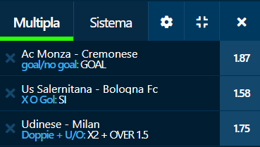 Schedine Serie A 18 e 19-03-23 Pronostici Serie a 2023-03-18 Quota Media sui Book Recensiti 5.17 Quota Media sui Book Recensiti 5.04 Book Consigliati e Recensiti 1 15 € GRATIS + 1024 € 4.8 / 5 TOTAL SCORE Check >>> Check >>> 2 30 euro + 20 giocate gratis 3.9 / 5 TOTAL SCORE Check >>> Check >>> 3 5 € GRATIS + 300 4.6 / 5 TOTAL SCORE Check >>> Check >>> 4 100 € sulla prima scommessa 4.8 / 5 TOTAL SCORE Check >>> Check >>>