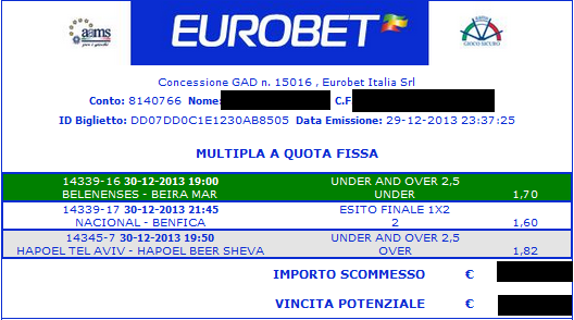 Dimenticavo sotto come al solito troverete la ricevuta della scommessa….