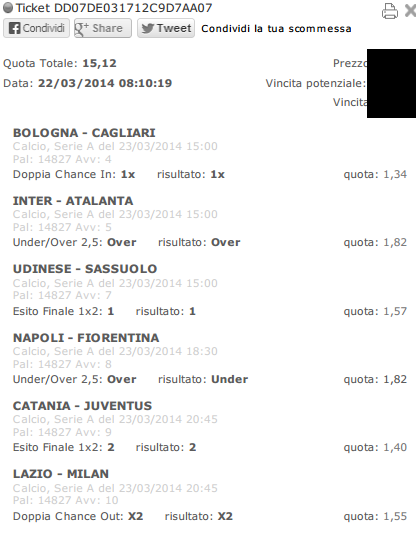 Pingback: Le ricevute dei pronostici vincenti del 22 e 23...