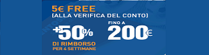 SNAI ti offre subito 5€ GRATIS senza deposito, più 10 GRATIS al Casinò e 550 € di rimborso scommesse