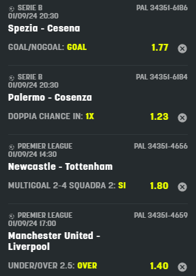 Pronostici calcio 01-09-24 Le scommesse della domenica