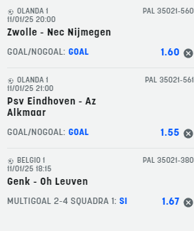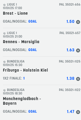 Pronostici calcio 11-01-25 Le scommesse del sabato Recensione Bonus Il nostro Voto Offerta SNAI € 5+500 4.8 Scopri Pronostici di oggi 2025-01-11 Scommetti 25 € VINCI 123.75 € PIAZZA LA SCOMMESSA Quota Totale 4.95 SNAI ti offre subito 5€ GRATIS senza deposito, più 10 GRATIS al Casinò e 550 € di rimborso scommesse Scommetti 25 € VINCI 103.5 € PIAZZA LA SCOMMESSA Quota Totale 4.14 SNAI ti offre subito 5€ GRATIS senza deposito, più 10 GRATIS al Casinò e 550 € di rimborso scommesse Book Consigliati e Recensiti 1 15 € GRATIS + 1024 € 4.8 / 5 TOTAL SCORE Check >>> Check >>> 2 30 euro + 20 giocate gratis 3.9 / 5 TOTAL SCORE Check >>> Check >>> 3 5 € GRATIS + 300 4.6 / 5 TOTAL SCORE Check >>> Check >>> 4 100 € sulla prima scommessa 4.8 / 5 TOTAL SCORE Check >>> Check >>>