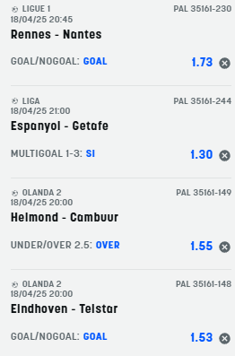 Pronostici calcio 18-04-25 Recensione Bonus Il nostro Voto Offerta SNAI € 5+500 4.8 Scopri Pronostici di oggi 2025-04-18 Scommetti 25 € VINCI 133.25 € PIAZZA LA SCOMMESSA Quota Totale 5.33 SNAI ti offre subito 5€ GRATIS senza deposito, più 10 GRATIS al Casinò e 550 € di rimborso scommesse Book Consigliati e Recensiti 1 15 € GRATIS + 1024 € 4.8 / 5 TOTAL SCORE Check >>> Check >>> 2 30 euro + 20 giocate gratis 3.9 / 5 TOTAL SCORE Check >>> Check >>> 3 5 € GRATIS + 300 4.6 / 5 TOTAL SCORE Check >>> Check >>> 4 100 € sulla prima scommessa 4.8 / 5 TOTAL SCORE Check >>> Check >>>
