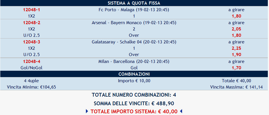 Ho preparato un sistemino su Eurobet con tutti i nostri pronostici champions league del 19-20/02/2013