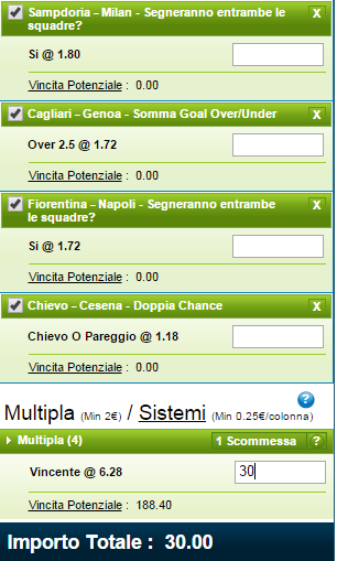 Schedine e Scommesse pronte serie A 08-09 Novembre 2014
