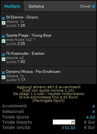 Gioca con BetFlag la combobet su St. Etienne-Dnipro 25€ di BONUS