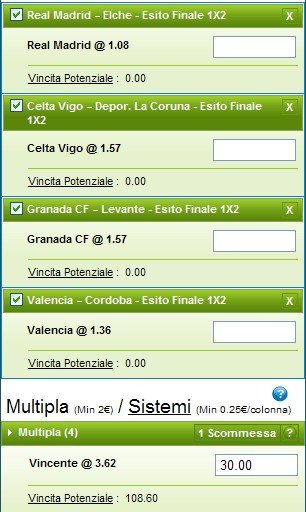 Scommetti 30 € VINCI 108,60 €