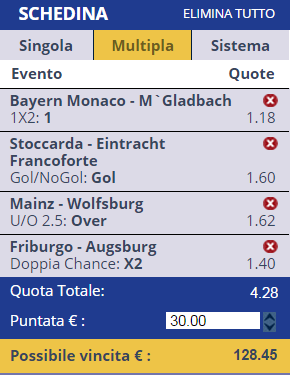 Scommetti su Bayern-Monchengladbach con EUROBET : BONUS 20€ + 100 €