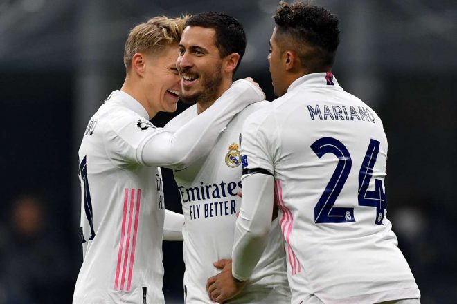 REAL MADRID (4-3-1-2): Courtois; Vasquez, Ramos, Varane, Mendy; Modric, Casemiro, Kroos; Odegaard; Asensio, Benzema. Allenatore: Zinedine Zidane.