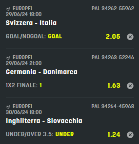 Schedina 29 e 30-06-24 Recensione Bonus Il nostro Voto Offerta SNAI € 5+500 4.8 Scopri Pronostici Europei 2024-06-29 Scommetti 25 € VINCI 100.25 € PIAZZA LA SCOMMESSA Quota Totale 4.01 SNAI ti offre subito 5€ GRATIS senza deposito, più 10 GRATIS al Casinò e 550 € di rimborso scommesse Book Consigliati e Recensiti 1 15 € GRATIS + 1024 € 4.8 / 5 TOTAL SCORE Check >>> Check >>> 2 30 euro + 20 giocate gratis 3.9 / 5 TOTAL SCORE Check >>> Check >>> 3 5 € GRATIS + 300 4.6 / 5 TOTAL SCORE Check >>> Check >>> 4 100 € sulla prima scommessa 4.8 / 5 TOTAL SCORE Check >>> Check >>>