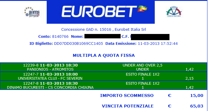 - Questo blog è l’unico che vi fa vedere le ricevute delle scommesse fatte e questo tiene traccia della bontà o della non bontà dei pronostici