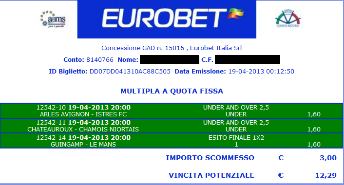 E questa è la ricevuta della scommmessa: