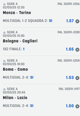 Scommesse vincenti 02-03-25 Book Consigliati e Recensiti 1 15 € GRATIS + 1024 € 4.8 / 5 TOTAL SCORE Check >>> Check >>> 2 30 euro + 20 giocate gratis 3.9 / 5 TOTAL SCORE Check >>> Check >>> 3 5 € GRATIS + 300 4.6 / 5 TOTAL SCORE Check >>> Check >>> 4 100 € sulla prima scommessa 4.8 / 5 TOTAL SCORE Check >>> Check >>>