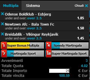 Scommesse vincenti 10-05-19 Book Consigliati e Recensiti 1 15 € GRATIS + 1024 € 4.8 / 5 TOTAL SCORE Check >>> Check >>> 2 30 euro + 20 giocate gratis 3.9 / 5 TOTAL SCORE Check >>> Check >>> 3 5 € GRATIS + 300 4.6 / 5 TOTAL SCORE Check >>> Check >>> 4 100 € sulla prima scommessa 4.8 / 5 TOTAL SCORE Check >>> Check >>>