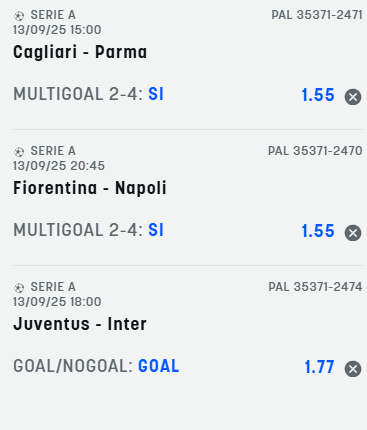 Scommesse vincenti 13-09-25 Book Consigliati e Recensiti 1 15 € GRATIS + 1024 € 4.8 / 5 TOTAL SCORE Check >>> Check >>> 2 30 euro + 20 giocate gratis 3.9 / 5 TOTAL SCORE Check >>> Check >>> 3 5 € GRATIS + 300 4.6 / 5 TOTAL SCORE Check >>> Check >>> 4 100 € sulla prima scommessa 4.8 / 5 TOTAL SCORE Check >>> Check >>>