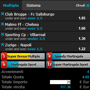 Scommesse vincenti 14-02-19 Book Consigliati e Recensiti 1 15 € GRATIS + 1024 € 4.8 / 5 TOTAL SCORE Check >>> Check >>> 2 30 euro + 20 giocate gratis 3.9 / 5 TOTAL SCORE Check >>> Check >>> 3 5 € GRATIS + 300 4.6 / 5 TOTAL SCORE Check >>> Check >>> 4 100 € sulla prima scommessa 4.8 / 5 TOTAL SCORE Check >>> Check >>>