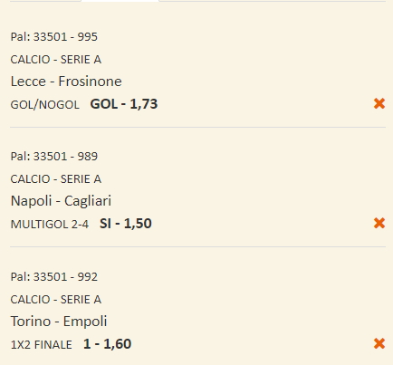 Scommesse vincenti 16-12-23 Book Consigliati e Recensiti 1 15 € GRATIS + 1024 € 4.8 / 5 TOTAL SCORE Check >>> Check >>> 2 30 euro + 20 giocate gratis 3.9 / 5 TOTAL SCORE Check >>> Check >>> 3 5 € GRATIS + 300 4.6 / 5 TOTAL SCORE Check >>> Check >>> 4 100 € sulla prima scommessa 4.8 / 5 TOTAL SCORE Check >>> Check >>>