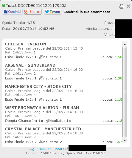 Pingback: Scommessa vincente di Domenica 23 Febbraio 2014