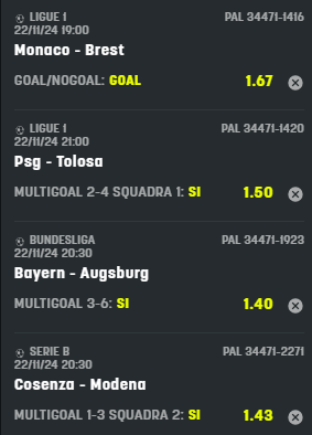 Scommesse vincenti 22-11-24 Book Consigliati e Recensiti 1 15 € GRATIS + 1024 € 4.8 / 5 TOTAL SCORE Check >>> Check >>> 2 30 euro + 20 giocate gratis 3.9 / 5 TOTAL SCORE Check >>> Check >>> 3 5 € GRATIS + 300 4.6 / 5 TOTAL SCORE Check >>> Check >>> 4 100 € sulla prima scommessa 4.8 / 5 TOTAL SCORE Check >>> Check >>>