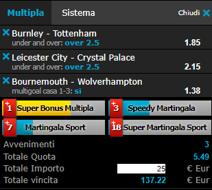 Scommesse vincenti 23-02-19 Book Consigliati e Recensiti 1 15 € GRATIS + 1024 € 4.8 / 5 TOTAL SCORE Check >>> Check >>> 2 30 euro + 20 giocate gratis 3.9 / 5 TOTAL SCORE Check >>> Check >>> 3 5 € GRATIS + 300 4.6 / 5 TOTAL SCORE Check >>> Check >>> 4 100 € sulla prima scommessa 4.8 / 5 TOTAL SCORE Check >>> Check >>>