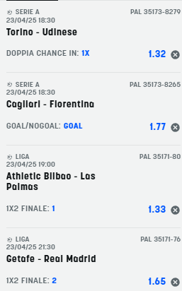 Scommesse vincenti 23-04-25 Book Consigliati e Recensiti 1 15 € GRATIS + 1024 € 4.8 / 5 TOTAL SCORE Check >>> Check >>> 2 30 euro + 20 giocate gratis 3.9 / 5 TOTAL SCORE Check >>> Check >>> 3 5 € GRATIS + 300 4.6 / 5 TOTAL SCORE Check >>> Check >>> 4 100 € sulla prima scommessa 4.8 / 5 TOTAL SCORE Check >>> Check >>>