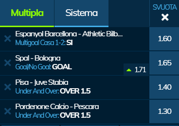 Scommesse vincenti 25-01-20 Book Consigliati e Recensiti 1 15 € GRATIS + 1024 € 4.8 / 5 TOTAL SCORE Check >>> Check >>> 2 30 euro + 20 giocate gratis 3.9 / 5 TOTAL SCORE Check >>> Check >>> 3 5 € GRATIS + 300 4.6 / 5 TOTAL SCORE Check >>> Check >>> 4 100 € sulla prima scommessa 4.8 / 5 TOTAL SCORE Check >>> Check >>>