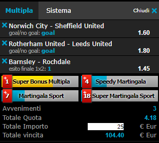 Scommesse vincenti 26-01-19 Book Consigliati e Recensiti 1 15 € GRATIS + 1024 € 4.8 / 5 TOTAL SCORE Check >>> Check >>> 2 30 euro + 20 giocate gratis 3.9 / 5 TOTAL SCORE Check >>> Check >>> 3 5 € GRATIS + 300 4.6 / 5 TOTAL SCORE Check >>> Check >>> 4 100 € sulla prima scommessa 4.8 / 5 TOTAL SCORE Check >>> Check >>>