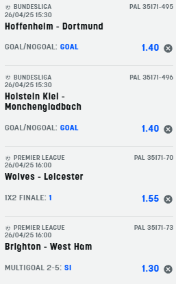 Scommesse vincenti 26-04-25 Book Consigliati e Recensiti 1 15 € GRATIS + 1024 € 4.8 / 5 TOTAL SCORE Check >>> Check >>> 2 30 euro + 20 giocate gratis 3.9 / 5 TOTAL SCORE Check >>> Check >>> 3 5 € GRATIS + 300 4.6 / 5 TOTAL SCORE Check >>> Check >>> 4 100 € sulla prima scommessa 4.8 / 5 TOTAL SCORE Check >>> Check >>>