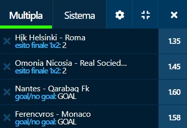 Scommesse vincenti 27-10-22 Book Consigliati e Recensiti 1 15 € GRATIS + 1024 € 4.8 / 5 TOTAL SCORE Check >>> Check >>> 2 30 euro + 20 giocate gratis 3.9 / 5 TOTAL SCORE Check >>> Check >>> 3 5 € GRATIS + 300 4.6 / 5 TOTAL SCORE Check >>> Check >>> 4 100 € sulla prima scommessa 4.8 / 5 TOTAL SCORE Check >>> Check >>>