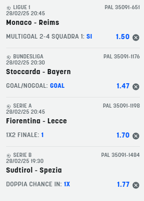 Scommesse vincenti 28-02-25 Book Consigliati e Recensiti 1 15 € GRATIS + 1024 € 4.8 / 5 TOTAL SCORE Check >>> Check >>> 2 30 euro + 20 giocate gratis 3.9 / 5 TOTAL SCORE Check >>> Check >>> 3 5 € GRATIS + 300 4.6 / 5 TOTAL SCORE Check >>> Check >>> 4 100 € sulla prima scommessa 4.8 / 5 TOTAL SCORE Check >>> Check >>>