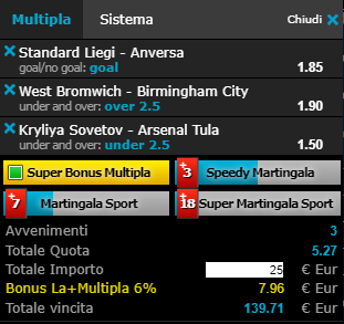 Scommesse vincenti 29-03-19 Book Consigliati e Recensiti 1 15 € GRATIS + 1024 € 4.8 / 5 TOTAL SCORE Check >>> Check >>> 2 30 euro + 20 giocate gratis 3.9 / 5 TOTAL SCORE Check >>> Check >>> 3 5 € GRATIS + 300 4.6 / 5 TOTAL SCORE Check >>> Check >>> 4 100 € sulla prima scommessa 4.8 / 5 TOTAL SCORE Check >>> Check >>>