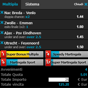 Scommesse vincenti 31-03-19 Book Consigliati e Recensiti 1 15 € GRATIS + 1024 € 4.8 / 5 TOTAL SCORE Check >>> Check >>> 2 30 euro + 20 giocate gratis 3.9 / 5 TOTAL SCORE Check >>> Check >>> 3 5 € GRATIS + 300 4.6 / 5 TOTAL SCORE Check >>> Check >>> 4 100 € sulla prima scommessa 4.8 / 5 TOTAL SCORE Check >>> Check >>>