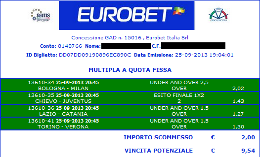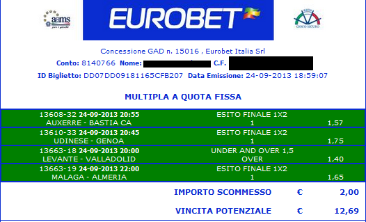 Vi pubblico la ricevute delle scommesse vincenti giocate con i pronostici del 24 -09-2013 e i pronostici del 25 -09-2013 se volete dargli un’occhiata consultate Pronostici Calcio Oggi