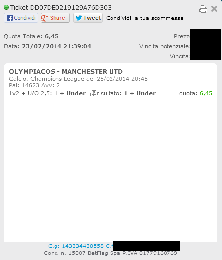 Davvero una bel martedì di Champions !!!!! Combobet e doppia beccate di brutto e una multipla in cui ci sono anche le partite di domani ancora in gioco. Sotto come al solito, per dimostrarvi che noi crediamo in quello che facciamo e soprattutto per tenere traccia delle nostre vincite vi pubblico le ricevute delle scommesse.